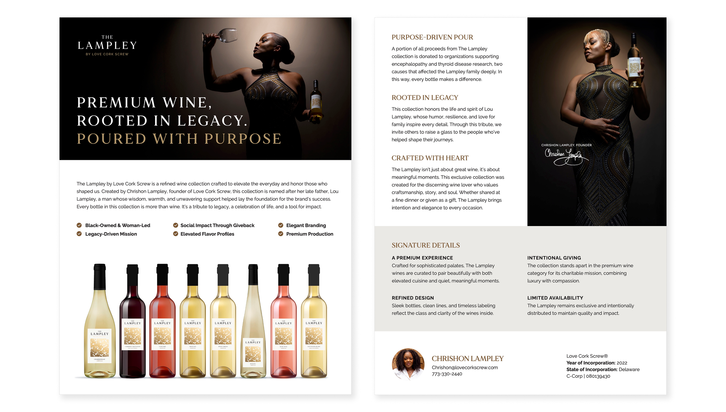 DesignLove Cork Screw, an established wine brand, partnered with the agency for creative support. I worked closely with our team at Crank Creative, leading the production process to ensure all work was cohesive, on-brand, and aligned with the client’s vision. My role included designing pitch decks, print ads, supporting photography shoots (including a collaboration with Stella Artois), and refining their overall brand identity.