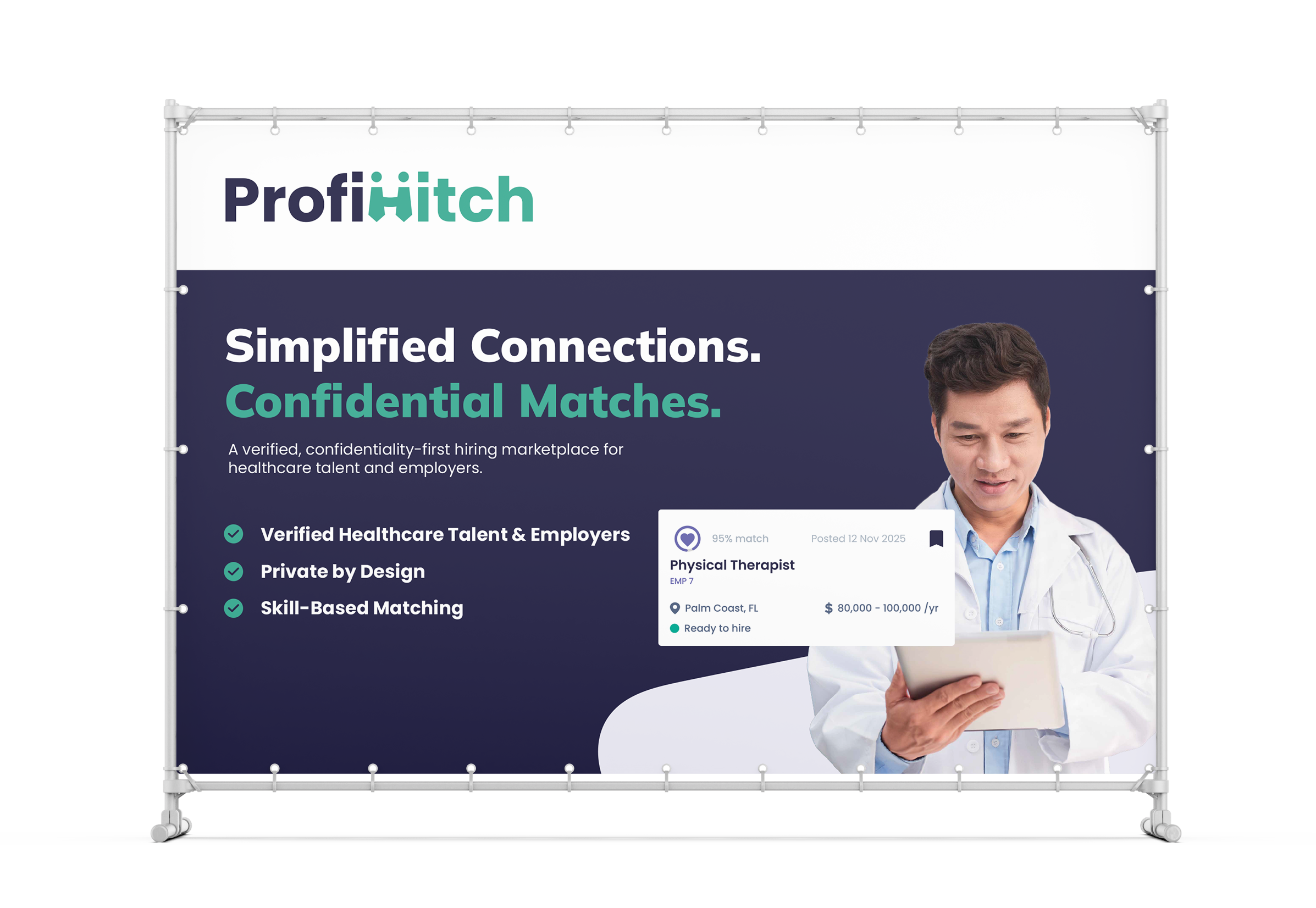 DesignProfiHitch is a platform that connects healthcare professionals with employers through AI-powered matching. I lead the creative production across all projects, guiding work from concept to delivery while also working hands-on to design print and digital materials, pitch decks, social media graphics, digital ads, and email campaigns. My role focuses on shaping the brand’s visual identity and making sure every deliverable feels cohesive, polished, and on-brand.